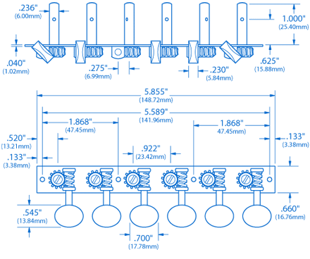 - Espaciado de eje de cuerda de 0,922" (23,42 mm)
