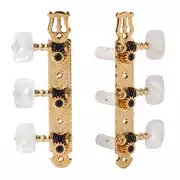 Juegos completos de 14:1 sintonizadores con placas base ornamentadas estilo lyra y perillas de plástico. Para guitarras clásicas de cuerda de nylon con pala ranurada y espaciado de cuerda de 35 mm (1-3/8"). Los manguitos de cuerda son de plástico blanco duradero de 3/8" de diámetro.
