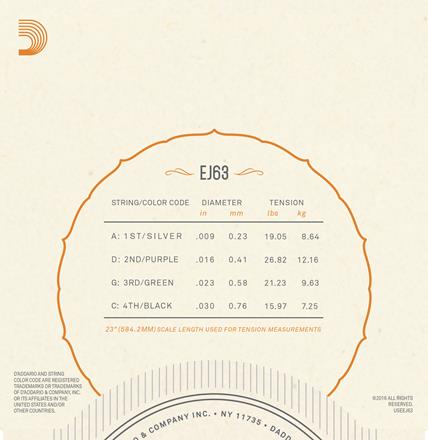 EJ63, el conjunto de banjo de tenor universalmente atractivo de D'Addario, está calibrado de manera óptima para el ajuste C-G-D-A en banjo de 4 cuerdas. Diseño de bucle para un ajuste universal.