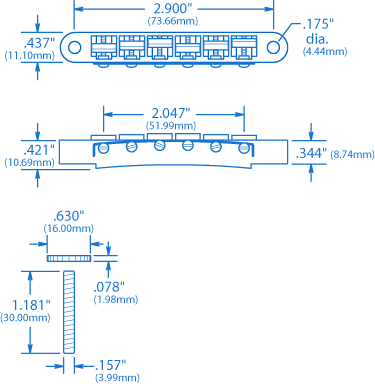 Un puente Tune-o-matic estilo 60 para un look vintage, con tornillos de entonación ajustables sujetados por un cable de retención.