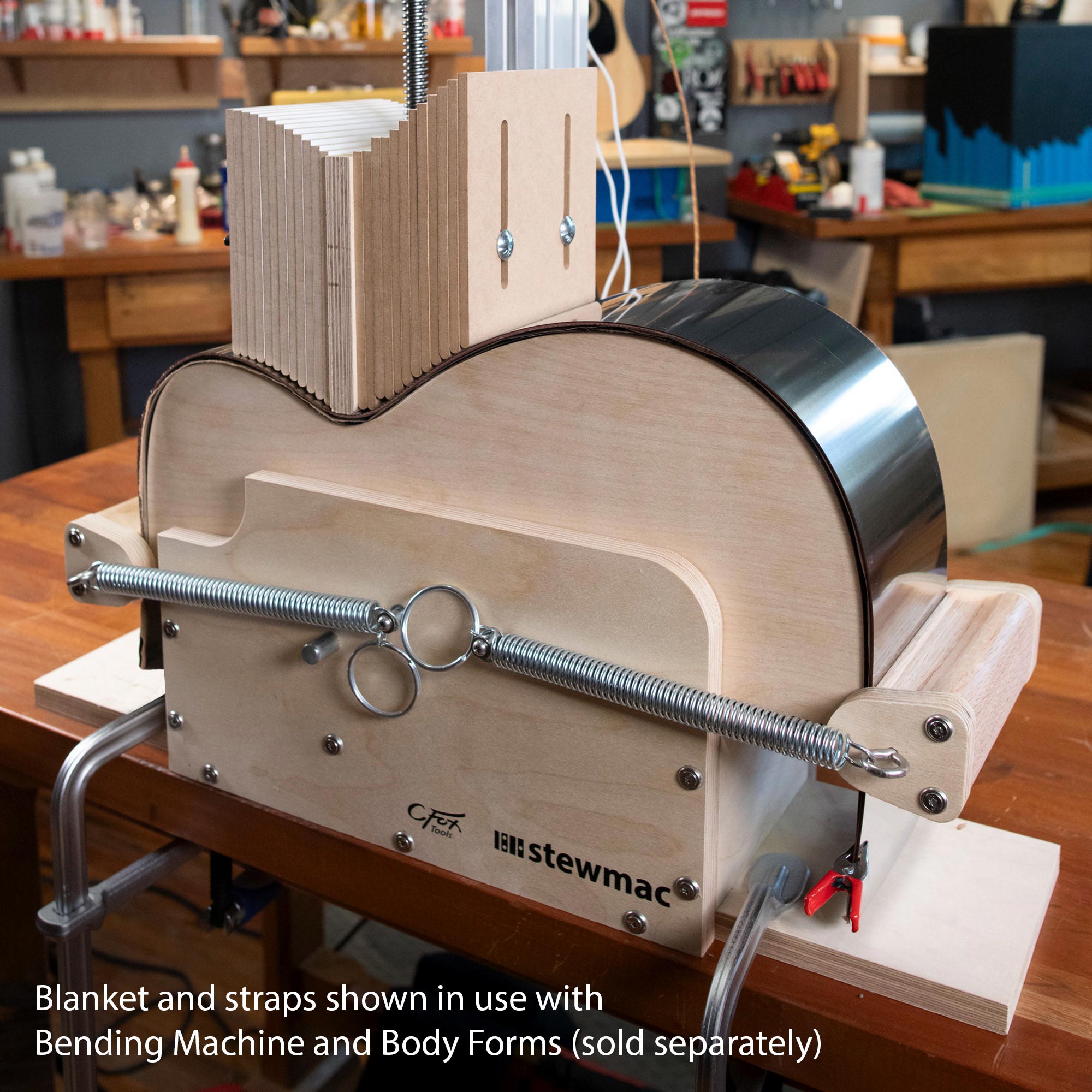 Para una flexión precisa, necesita una manta térmica y correas de flexión de acero para ayudar a concentrar el vapor y transferir el calor sin problemas. Esta manta térmica tiene el tamaño, la forma y el grosor adecuados para doblar los lados de la guitarra acústica. Con un calor uniforme de extremo a extremo, sus lados se adaptarán a la forma de sus formas de doblado sin sorpresas ni puntos fríos. ¡Esto es crucial cuando el calor y el vapor son fuertes!