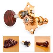 Waverly cuentan con eje de cuerda cónicas de 1/4" de diámetro y los casquillos hexagonales de latón de ajuste a presión se ajustan a orificios de clavijero 11/32" de diámetro. Juego de 6 clavijeros , 3 izquierdo/3 derecho, tornillos incluidos.