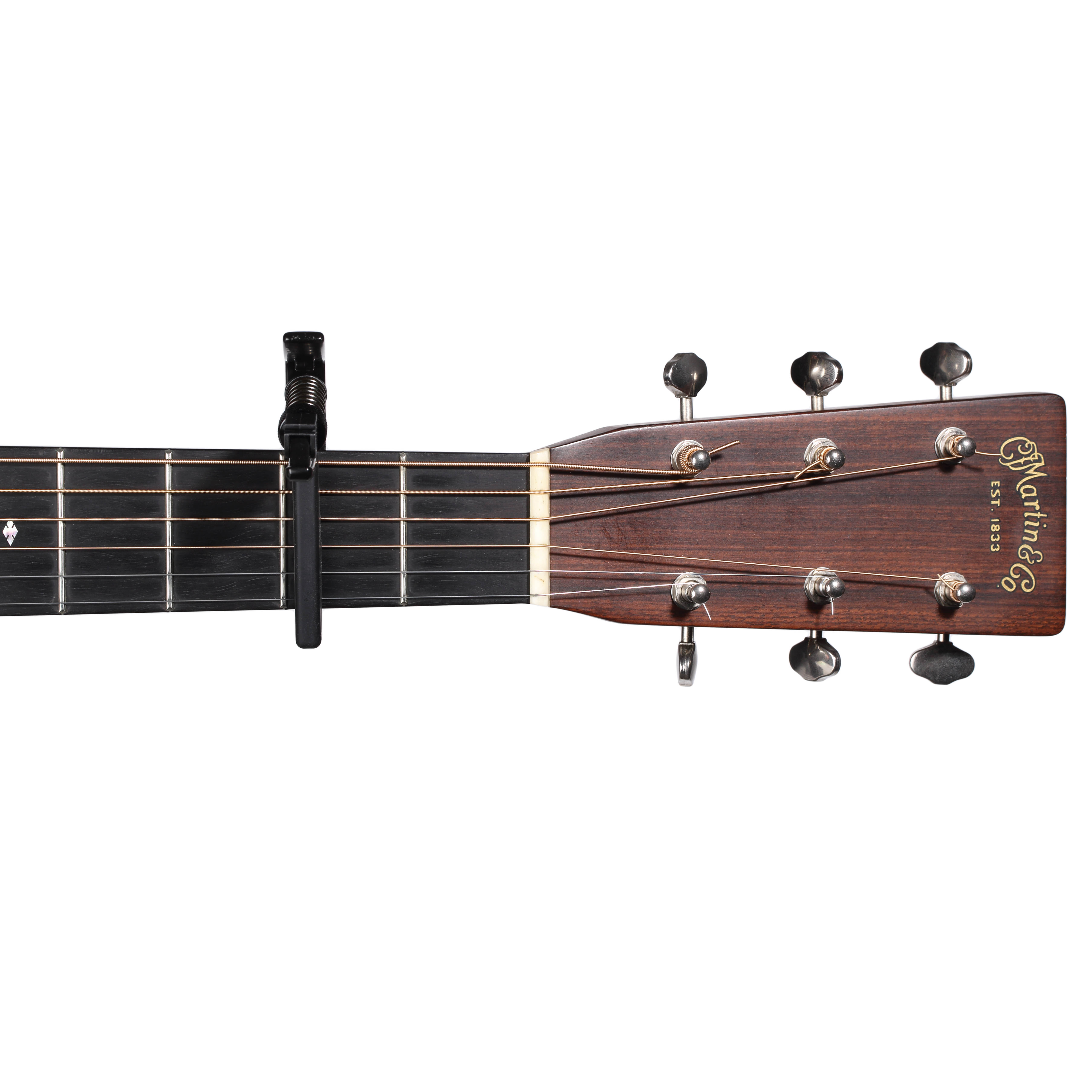 El NS Artist Capo utiliza una geometría patentada de tres acciones que reduce la fuerza necesaria para abrir y cerrar el capo mientras aplica una tensión uniforme independientemente del perfil del mástil .