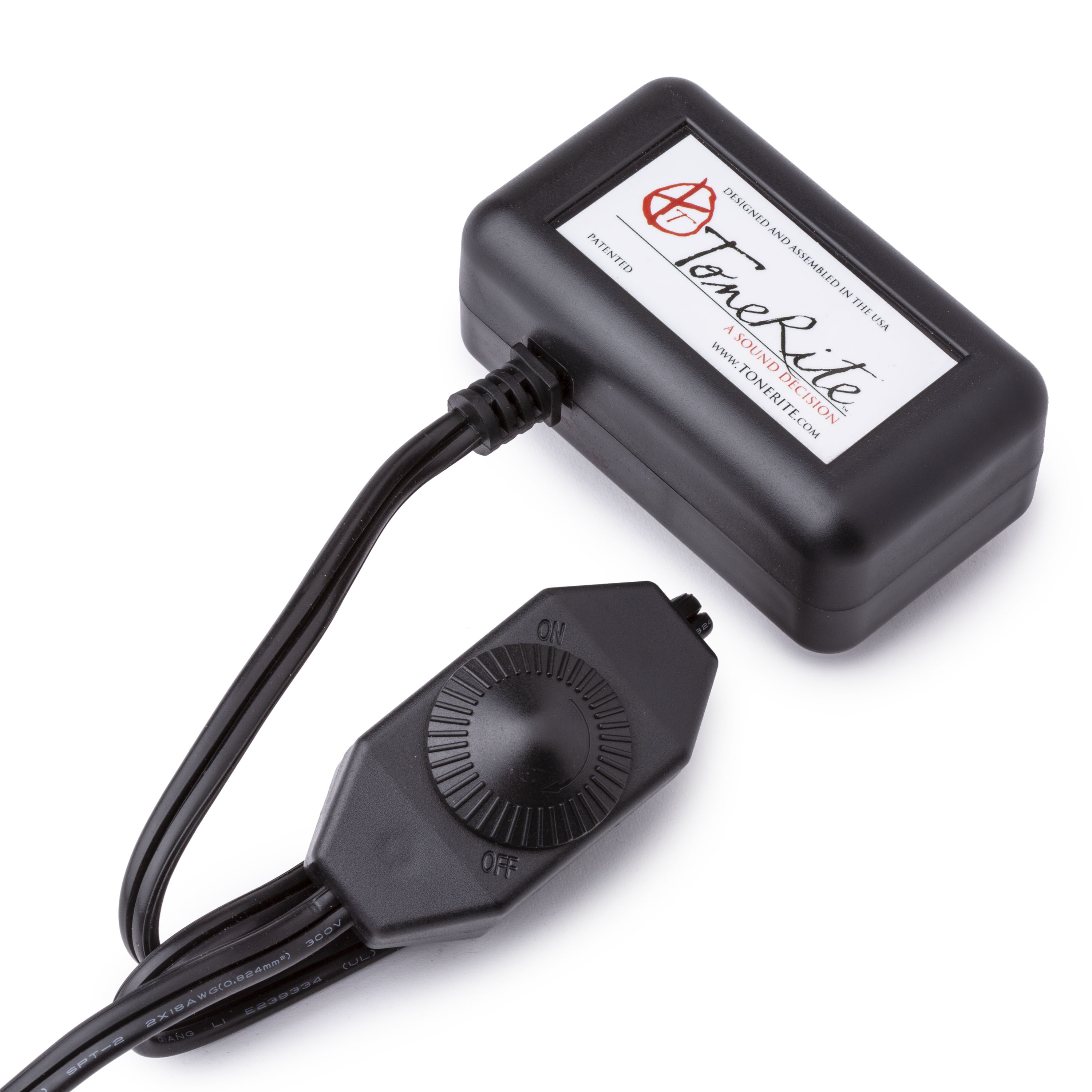 ToneRite encaja entre las cuerdas de una guitarra con bajo clásico, acústico, archtop o de acero ( espaciado de cuerdas de hasta 2-5/32" / 55 mm ) y descansa contra el puente. Las patas especiales Elastone de Elastone están diseñadas para maximizar la transferencia de energía al instrumento de forma segura y silenciosa. La intensidad de la vibración se puede controlar mediante un práctico dial en el cable de alimentación.