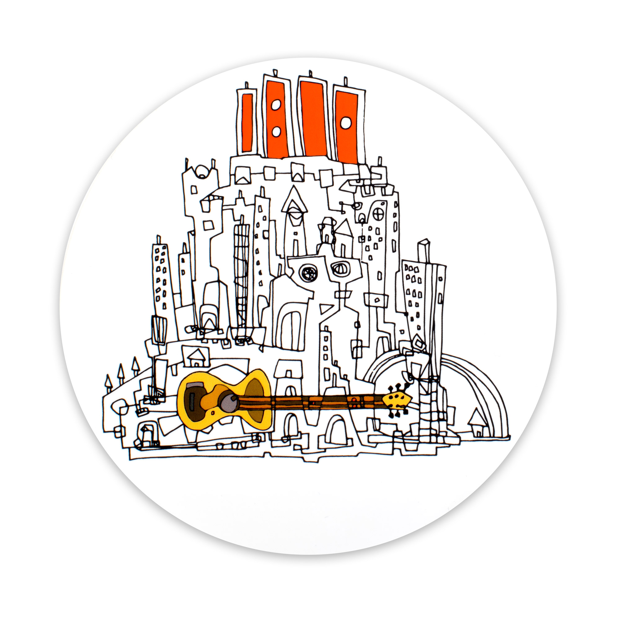 El juego de 4 incluye: StewMac City and Graffiti Logo Sticker de Matthew Carey, Heritage Logo Sticker de Brent Galloway y Script Logo Sticker.