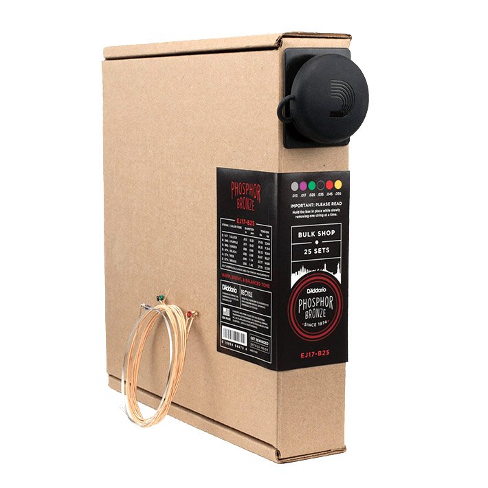 Disponible en un práctico paquete a granel de 25 juegos, el bronce fosforado es el juego de cuerdas de guitarra acústica más popular de D'Addario.