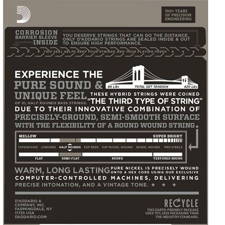 Juego de calibre 45 a 100 con las ventajas de un exclusivo proceso de fabricación "medio redondo" Brillo y tensión similares a los de las cuerdas de cuerda redondas estándar con un tacto más suave Se adapta a bajos de gran escala con una longitud de escala de cuerda de hasta 36 1/4 pulgadas Fabricado en EE. UU. para la máxima calidad y rendimiento Medidores de cuerda: Herida 0,045, 0,065, 0,080, 0,100