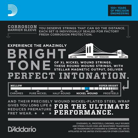 Las cuerdas D'Addario XL Nickel Wound Electric Bass son reconocidas mundialmente como "The Player's Choice" entre los jugadores de bajos de todos los géneros y estilos. Todas las cuerdas XL se enrollan con precisión en nuestras exclusivas máquinas controladas digitalmente, lo que garantiza que cada cuerda tenga una entonación excelente, unos fundamentos claros y una consistencia sin igual. Cada cuerda está enrollada con un cable de acero niquelado conocido por su tono brillante distintivo con una excelente salida magnética que ofrece un tono universalmente atractivo y versátil para todos los estilos de juego.