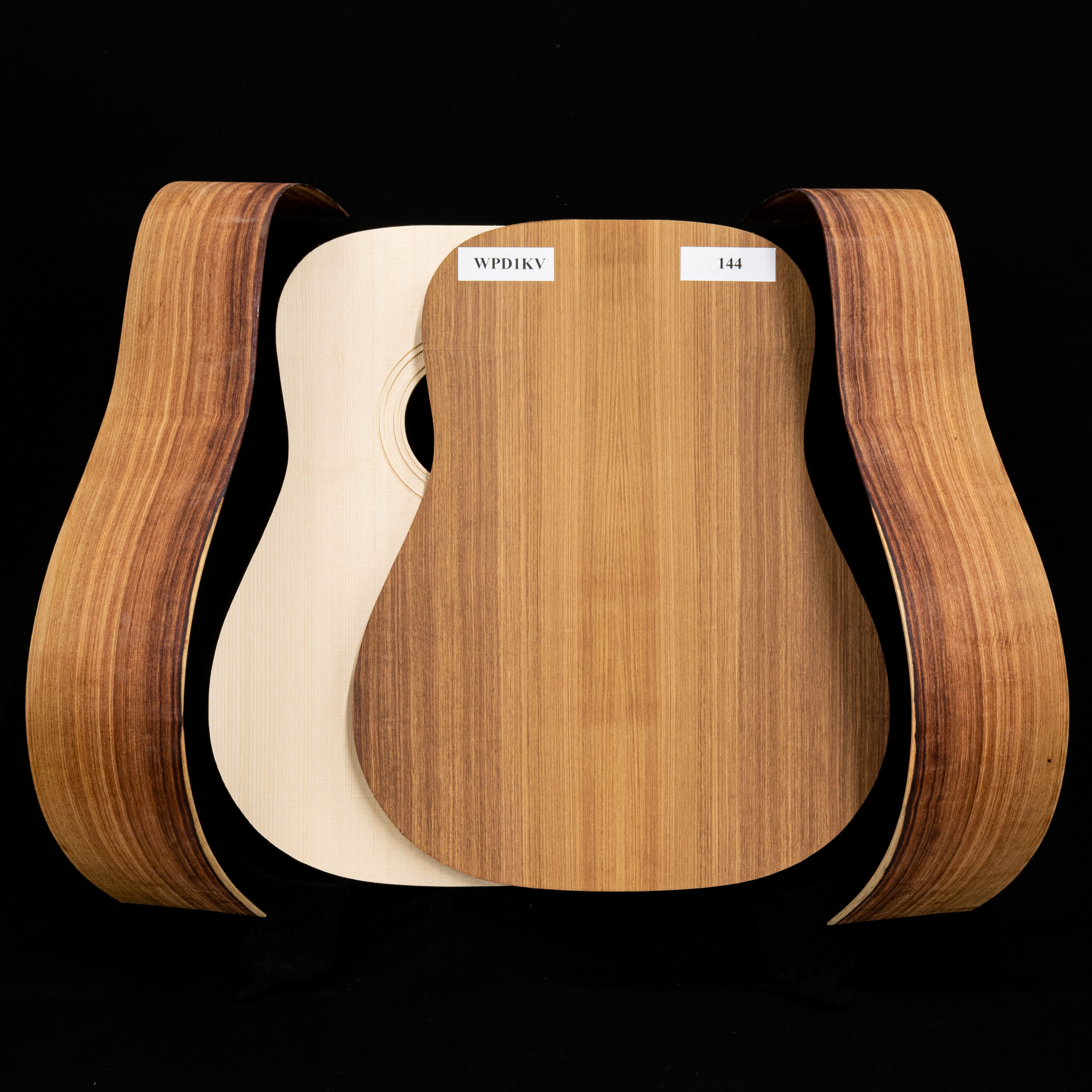 Hemos fotografiado cada conjunto individualmente; lo que ves en la primera imagen es la madera real que recibirás. Acerque el zoom y eche un vistazo a la figura única de cada conjunto, el grano y cada detalle de la espalda, los laterales y la parte superior de su kit y prepárese para construir la guitarra de sus sueños.