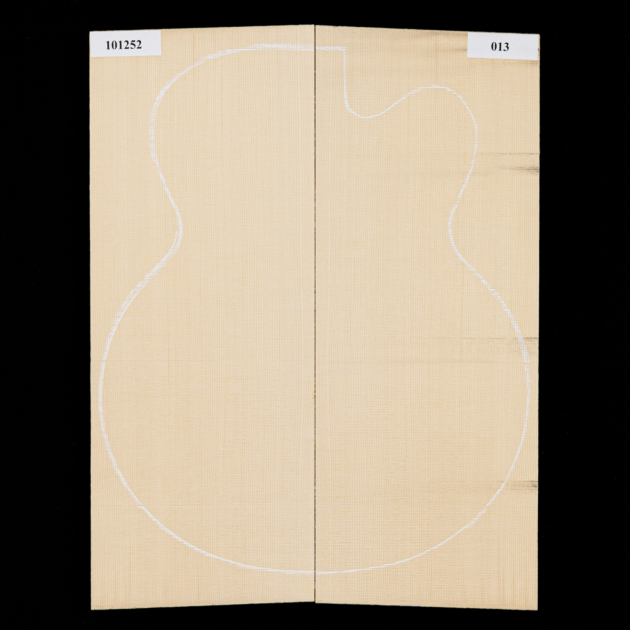 Una abeto rica y de sonido completo con tamaño para tallar una guitarra acústica de arco superior. A menudo utilizado como alternativa al abeto alemán, Engelmann Spruce tiene un color uniforme, grano ajustado y una excelente proyección sonora.