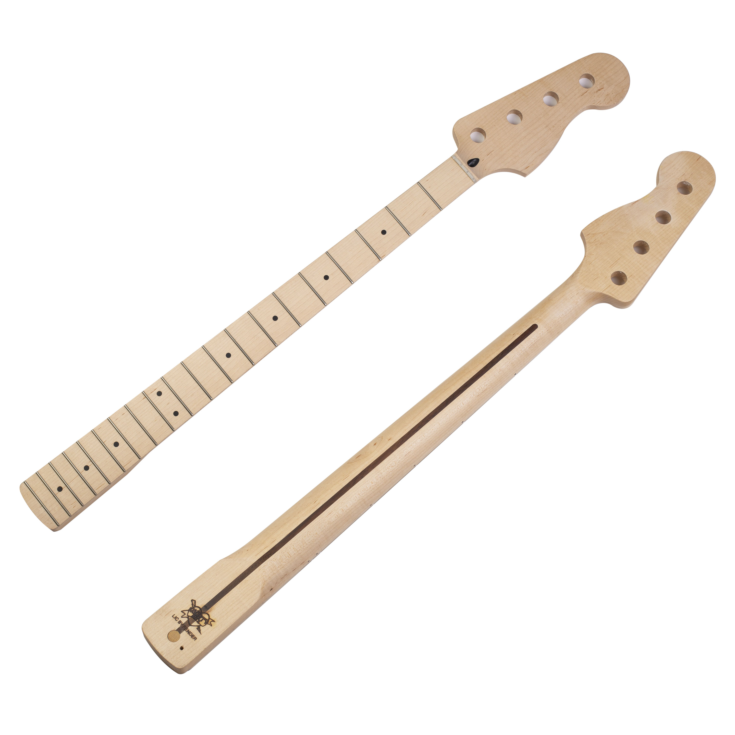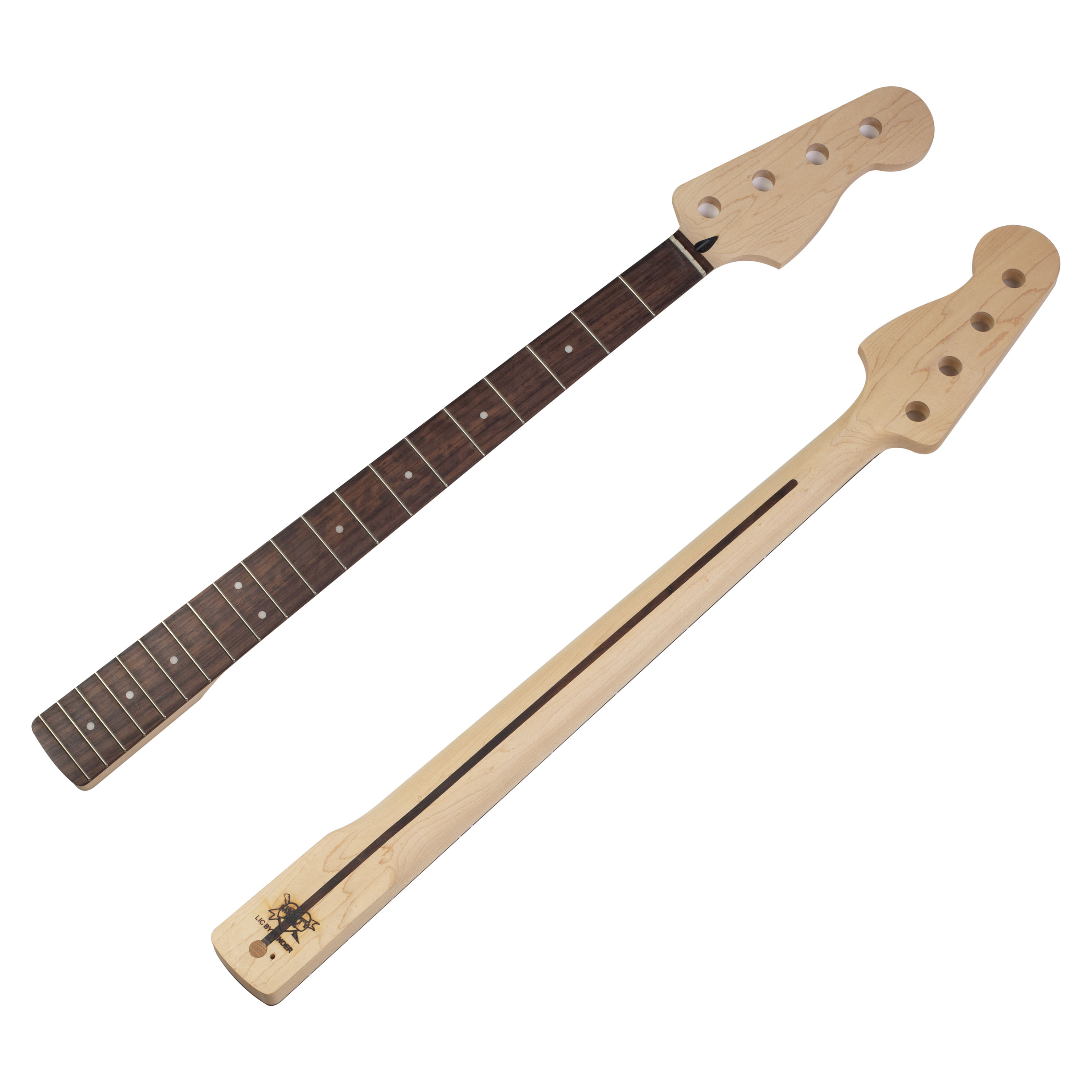 Los 20 trastes están bien acabados, y la cejuela está ranurada y formada con plástico PPS con una parte inferior plana. El diapasón de arce o palosanto de India con incrustaciones de puntos y marcadores laterales.