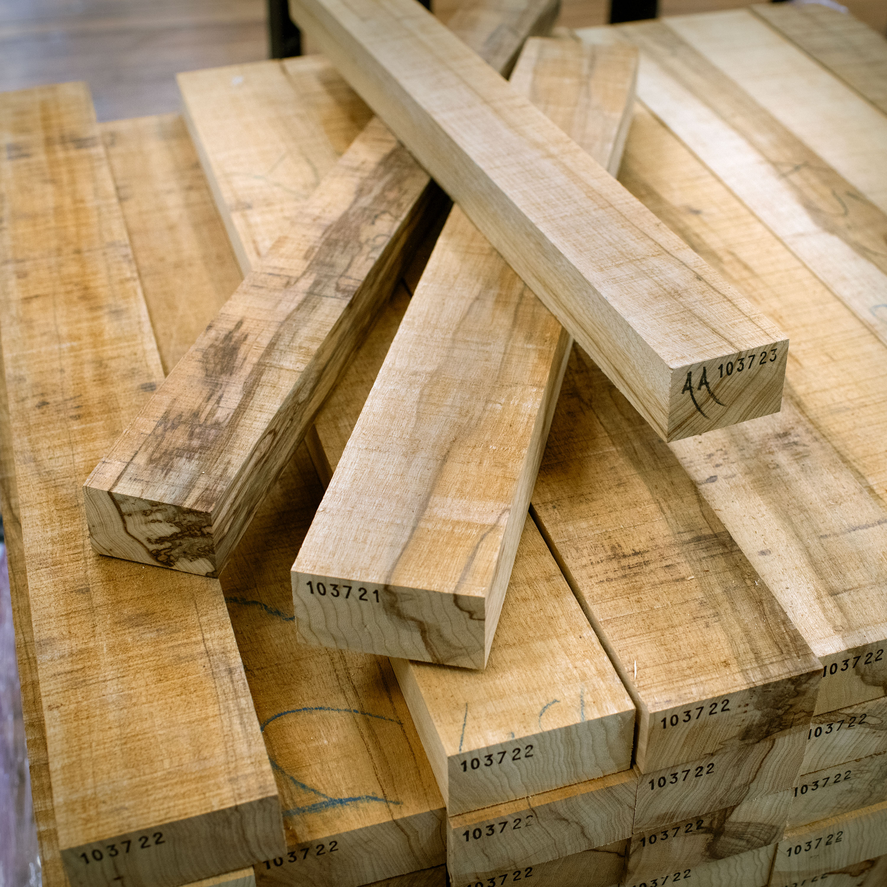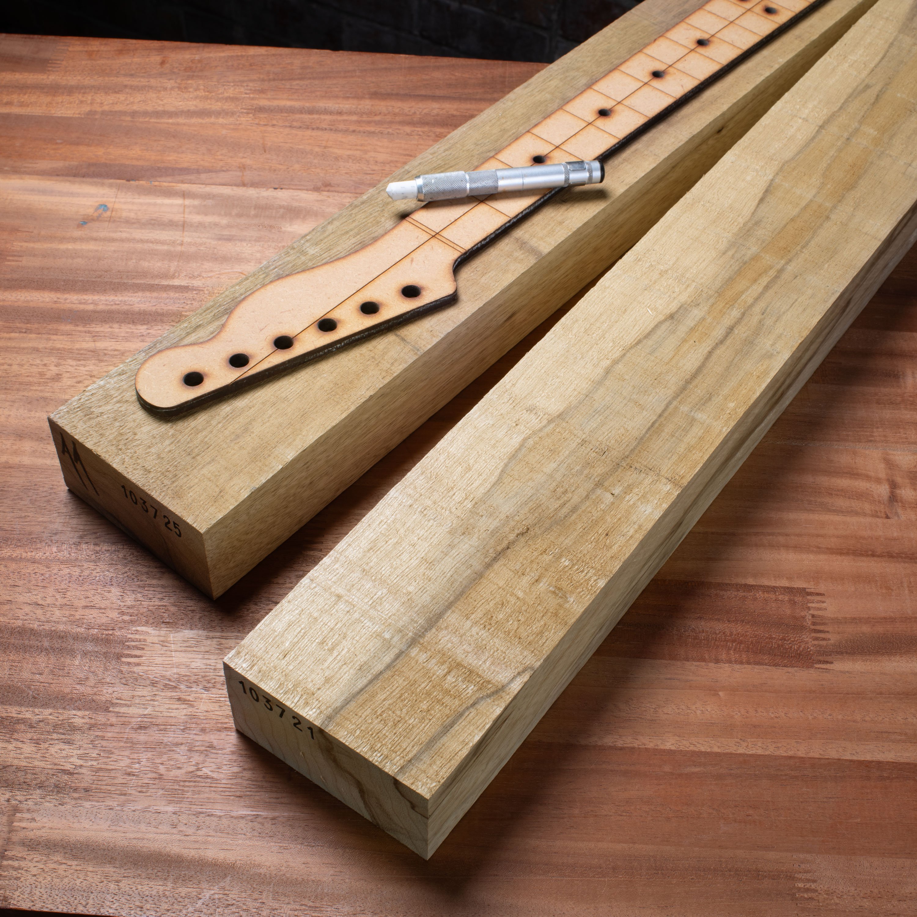Durante más de 50 años hemos suministrado madera de mástil selecta a fabricantes de instrumentos grandes y pequeños. Cada pieza de partida para mástil secada al horno es una pieza sólida, lista para lijar, cortar bandas y dar forma en tu tienda. Los tamaños incluyen suficiente madera para añadir "orejas" de cabeza.