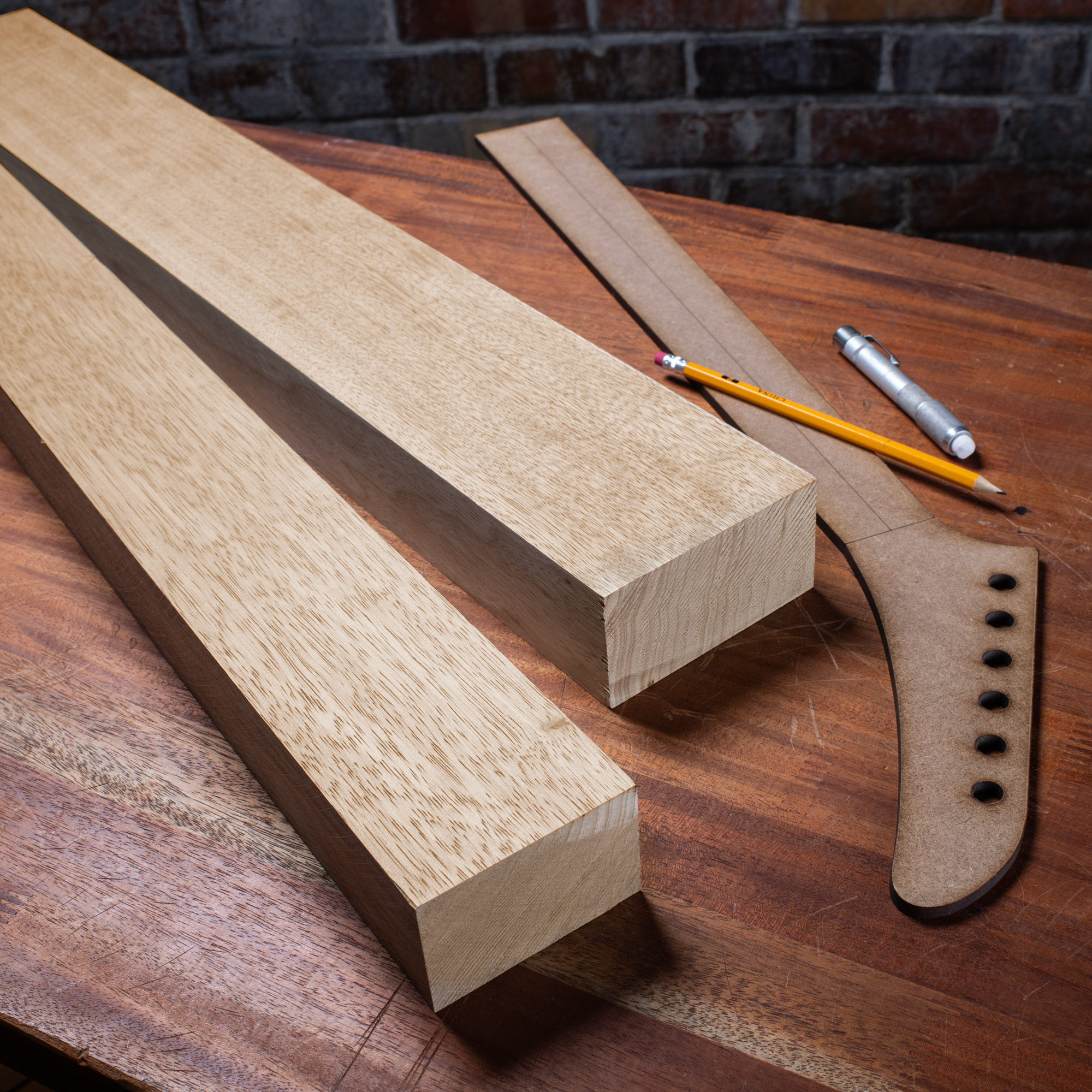 Durante más de 50 años hemos suministrado madera de mástil selecta a fabricantes de instrumentos grandes y pequeños. Cada pieza de partida para mástil secada al horno es una pieza sólida, lista para lijar, cortar bandas y dar forma en tu tienda. Los tamaños incluyen suficiente madera para añadir "orejas" de cabeza.