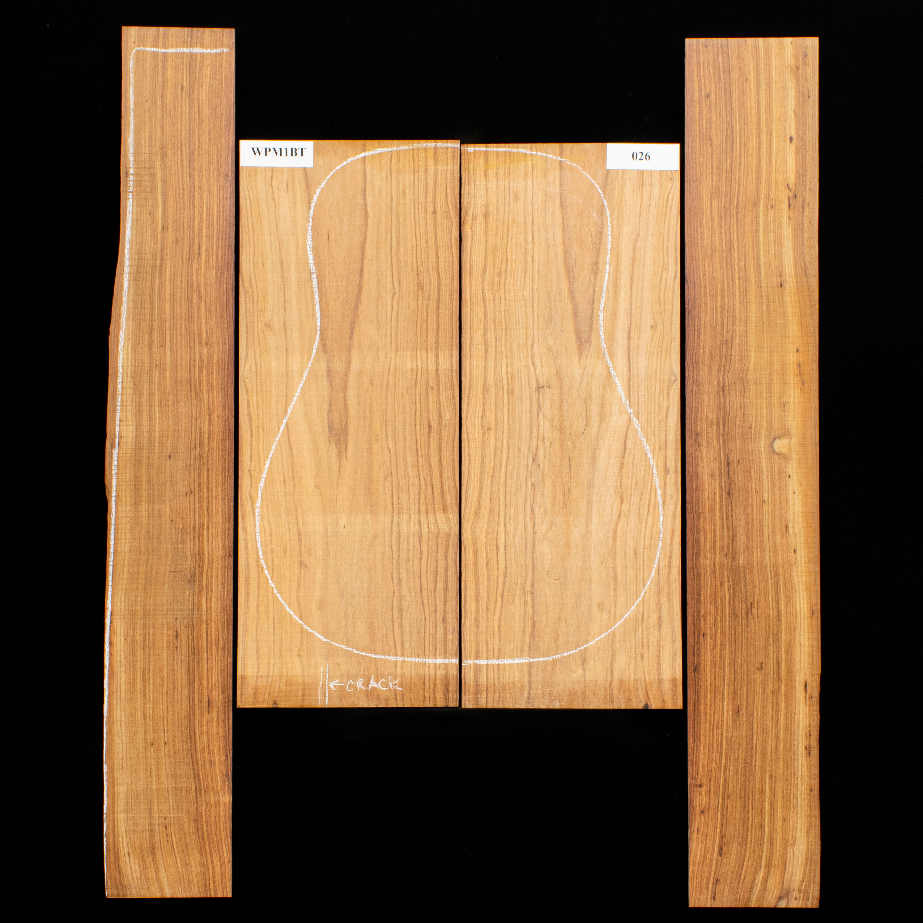 El color marrón medio natural de Granadillo, a menudo con toques de morado o rojo, se oxida bellamente con el tiempo hasta convertirse en un chocolate profundo y rico. La figura ondulada, similar a la de un río, es normal en los juegos de mayor grado.
