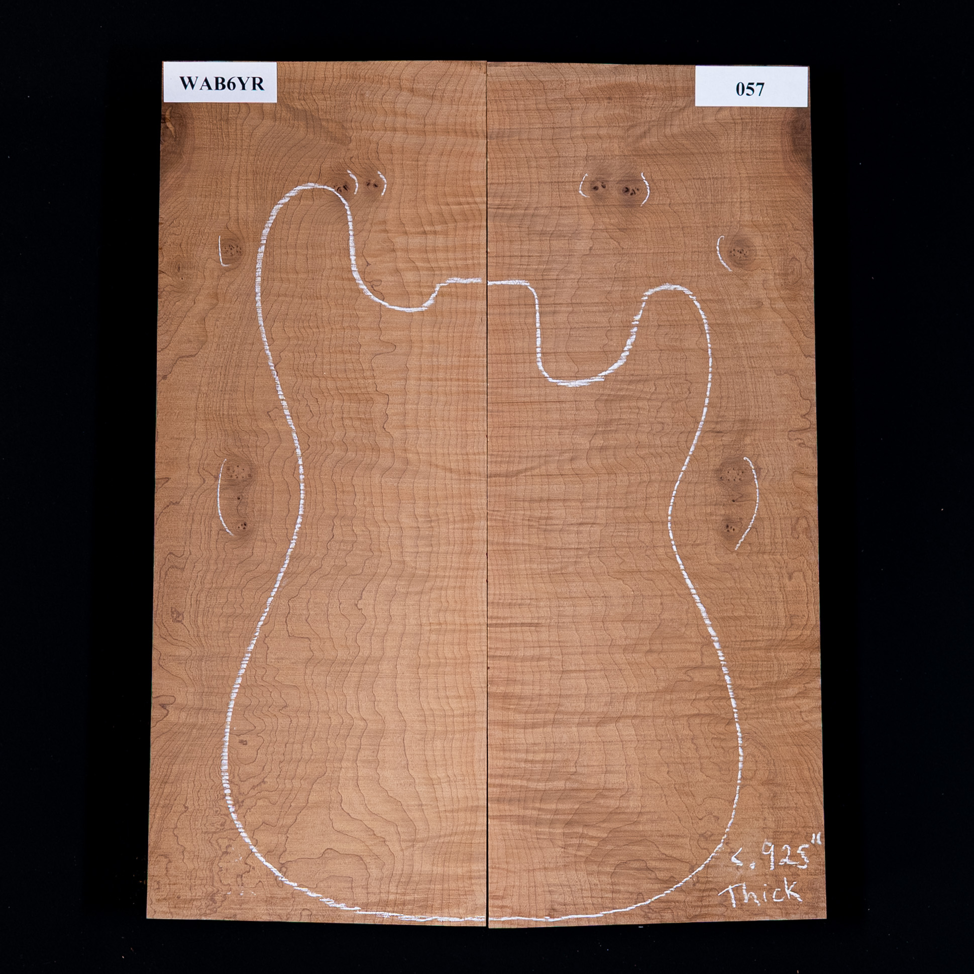 Tal vez la madera de guitarra eléctrica más popular de todos los tiempos, el arce flameado de Bigleaf es buscado por su belleza, simetría y rizo intenso que tiene un efecto visual casi tridimensional bajo acabado.