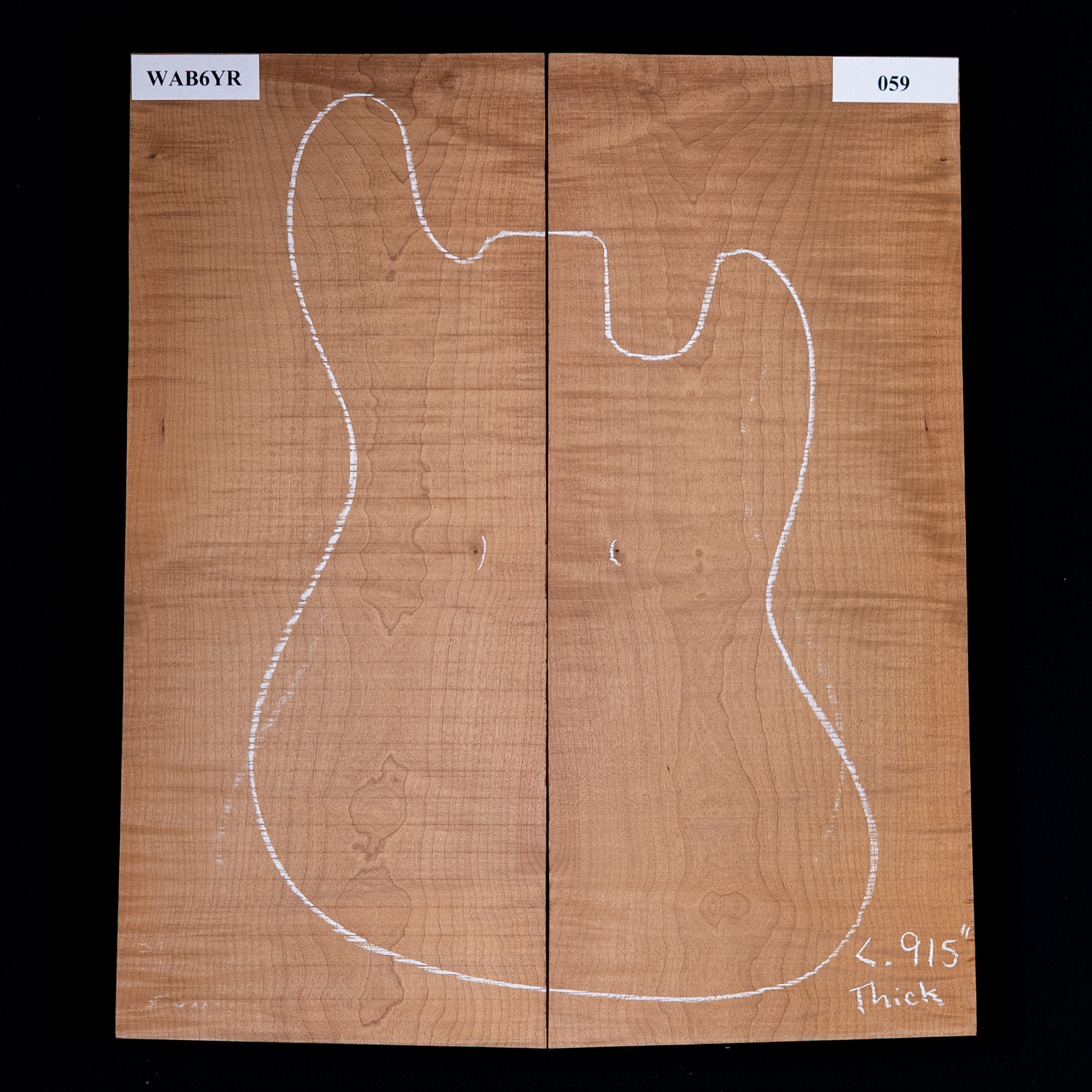 Tal vez la madera de guitarra eléctrica más popular de todos los tiempos, el arce flameado de Bigleaf es buscado por su belleza, simetría y rizo intenso que tiene un efecto visual casi tridimensional bajo acabado.