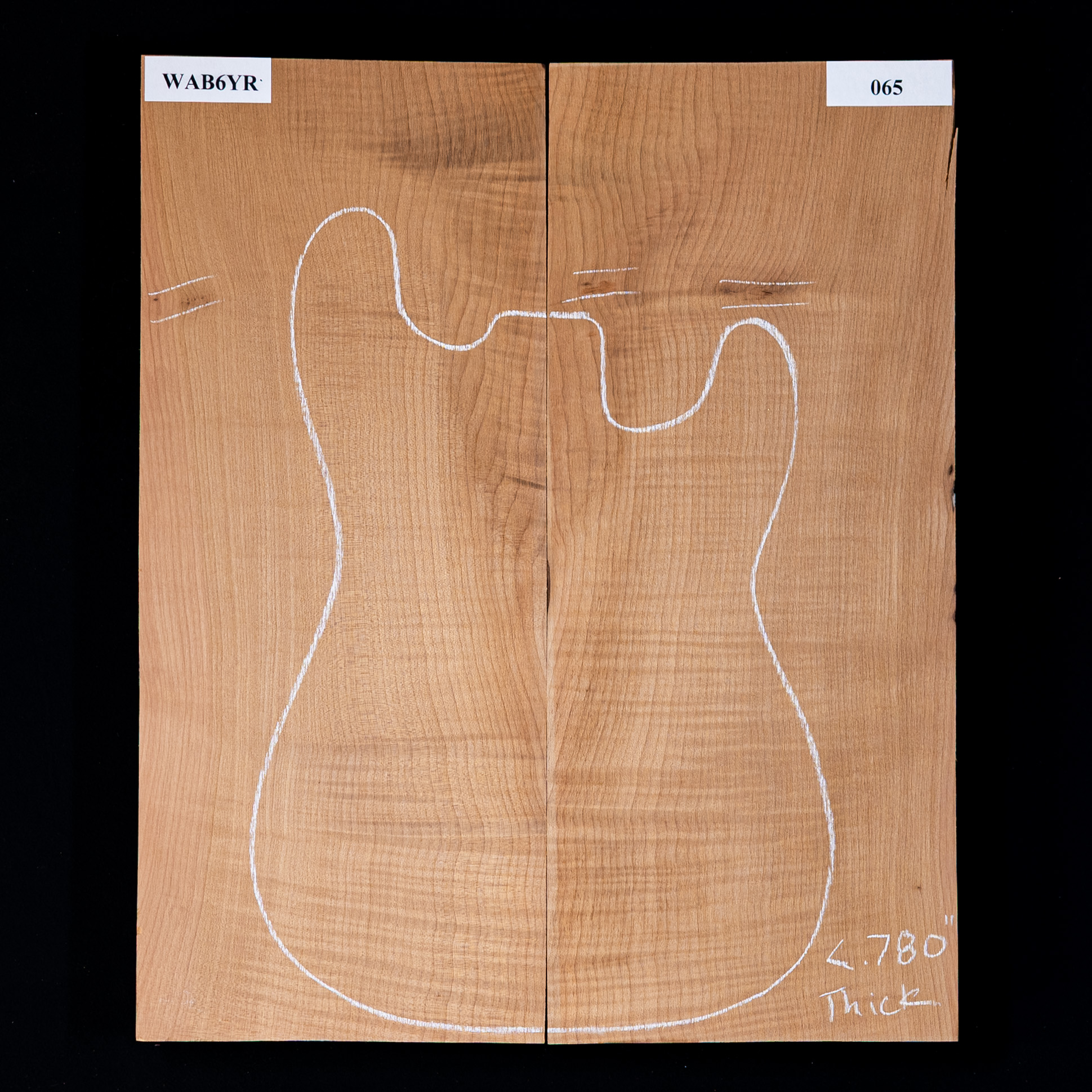 Tal vez la madera de guitarra eléctrica más popular de todos los tiempos, el arce flameado de Bigleaf es buscado por su belleza, simetría y rizo intenso que tiene un efecto visual casi tridimensional bajo acabado.