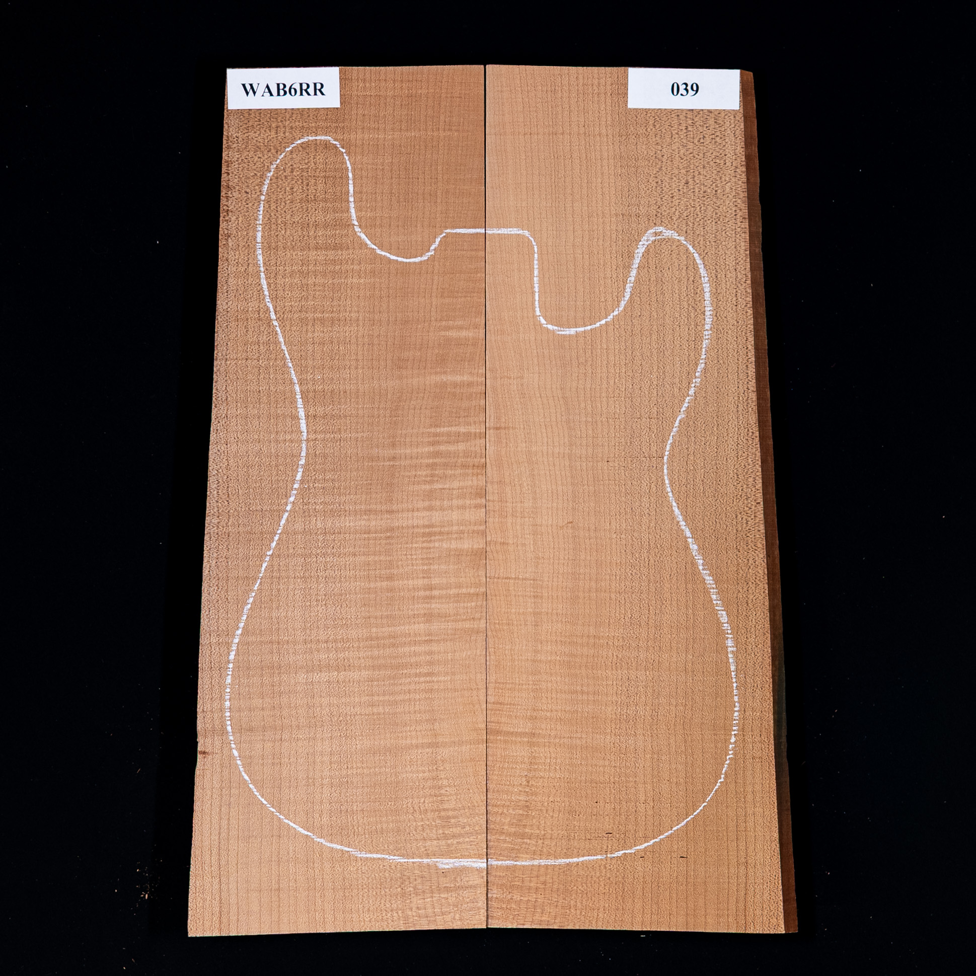 Tal vez la madera de guitarra eléctrica más popular de todos los tiempos, el arce flameado de Bigleaf es buscado por su belleza, simetría y rizo intenso que tiene un efecto visual casi tridimensional bajo acabado.