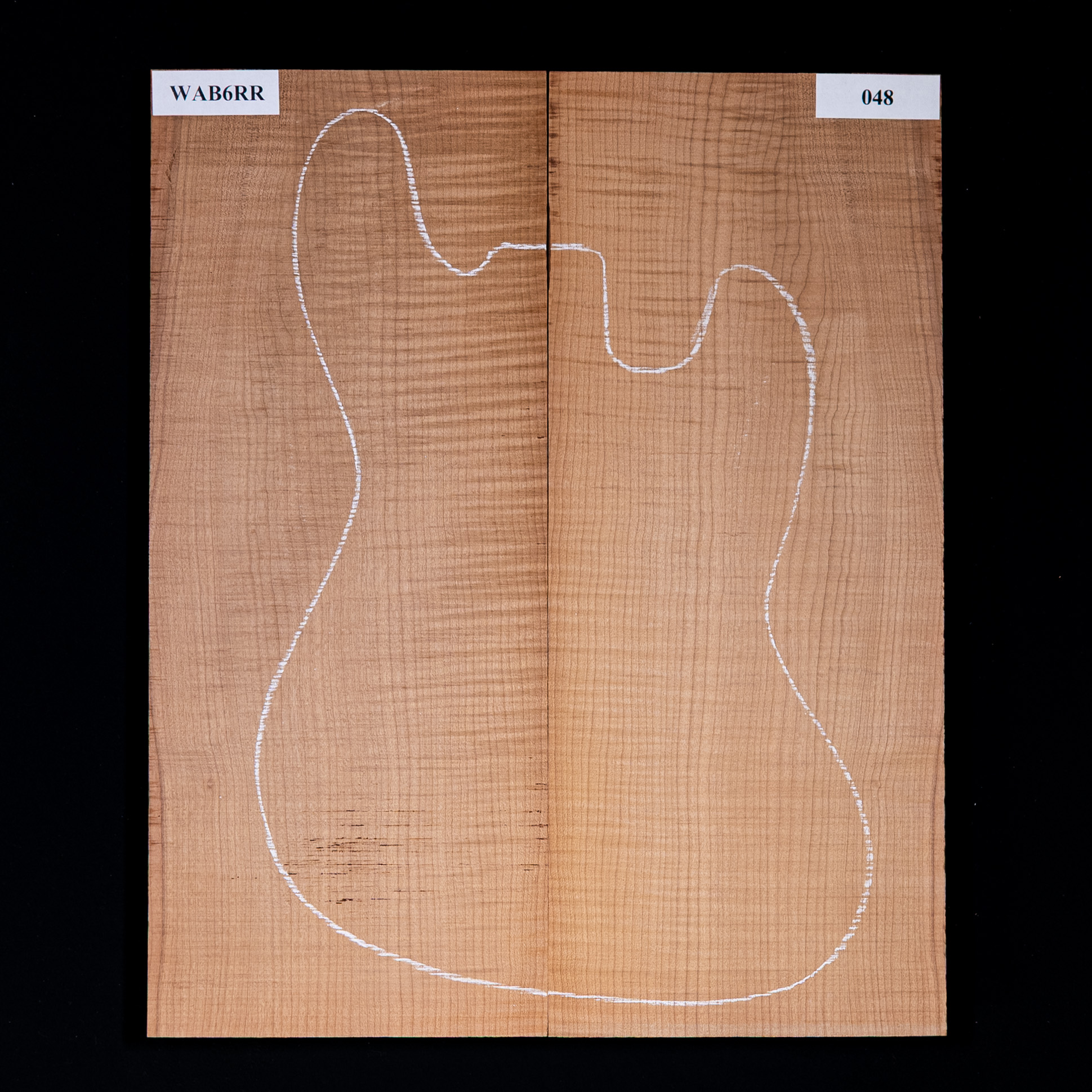 Tal vez la madera de guitarra eléctrica más popular de todos los tiempos, el arce flameado de Bigleaf es buscado por su belleza, simetría y rizo intenso que tiene un efecto visual casi tridimensional bajo acabado.