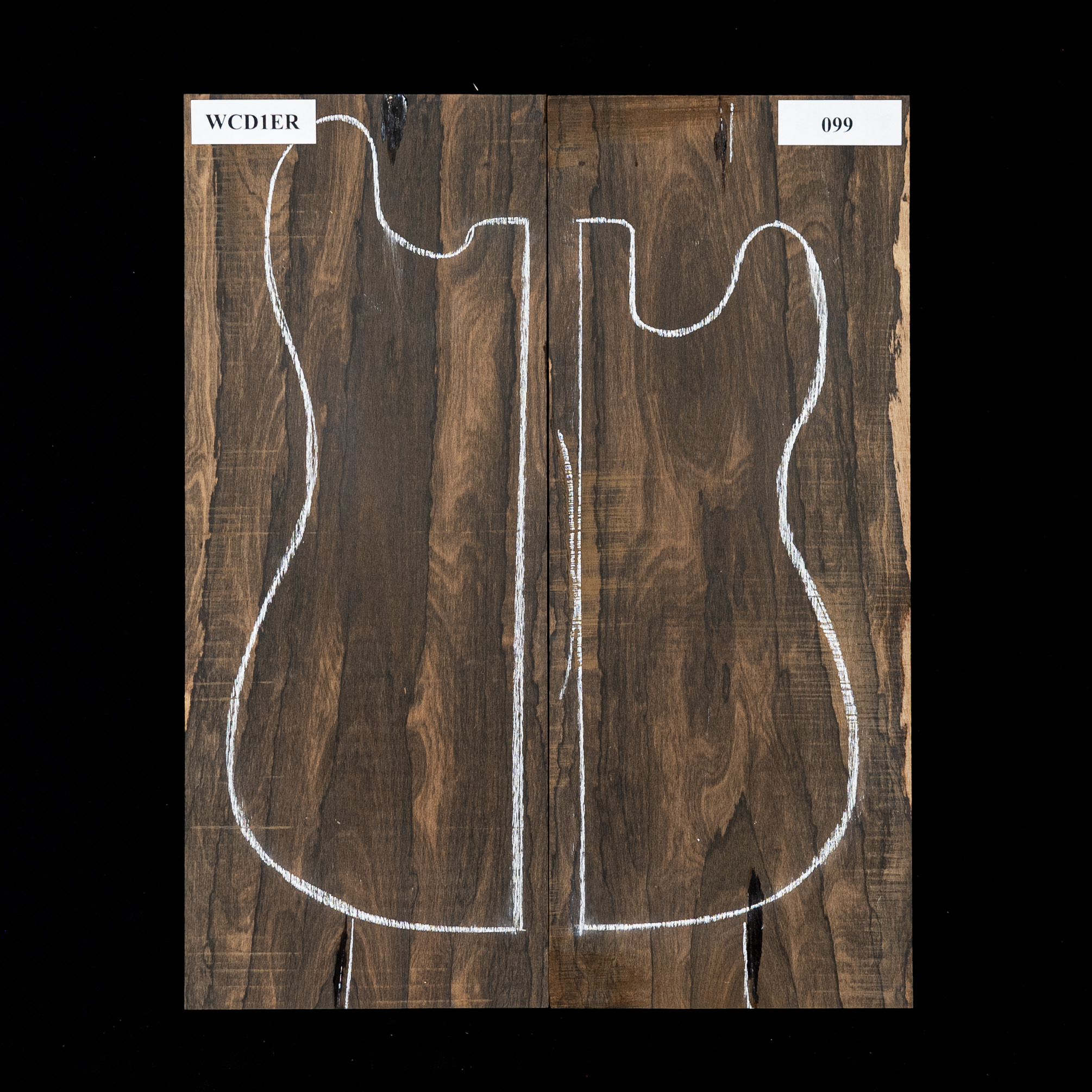 Ampliamente elegida por sus hermosos colores, su profunda variación en negro y su amplio ziricote en palet de color es una de las maderas tonales más impresionantes visualmente disponibles en la actualidad.