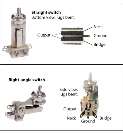 El selector Switchcraft de doble polo 3 posiciones ha sido el estándar en Gibson® y otras guitarras americanas de 2 pastilla .
