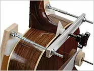 La plantilla de extracción de cuello aplica una presión gradual y controlada para expulsar el mástil de forma segura de una unión de cola de milano. Nos gustaría dar las gracias a Bryan Galloup de Galloup Guitars por la idea que llevó al desarrollo de esta herramienta.