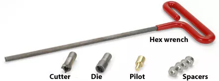 Utilice el kit de rescate para limpiar roscas, cortar roscas nuevas y retirar la madera para dejar espacio para que la alma funcione. ¡Incluso rescata las alma cuando la tuerca de ajuste se ha roto!