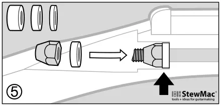 Ahora que la cavidad de la alma es más profunda, se necesitará una tuerca de ajuste más larga. StewMac ofrece las siguientes tuercas de extensión alma para guardabarros: