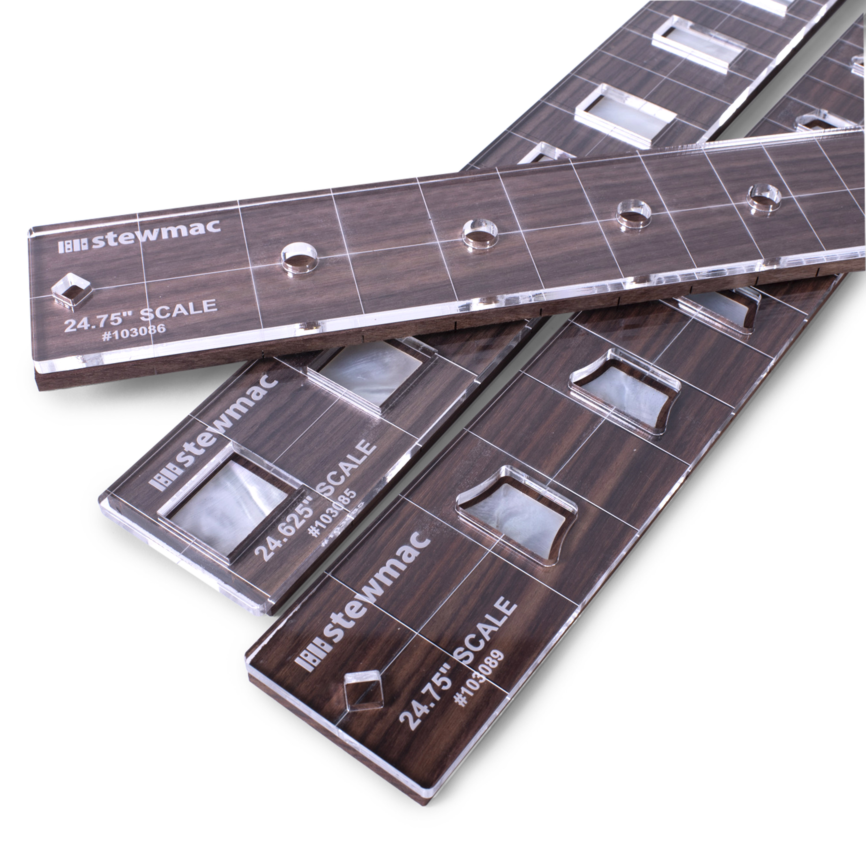 - La plantilla de fresado de incrustación de diapasón: hay disponible una variedad de formas de incrustación y longitudes de escala en stewmac.com plantilla de fresado